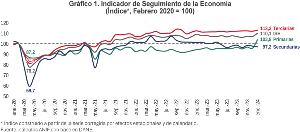 • Las actividades primarias, impulsadas por la producción agrícola, jalonaron el crecimiento del mes y superaron, por primera vez, los registros prepandemia.