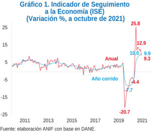 Los datos más recientes de los indicadores líderes muestran que la recuperación económica sigue por buen camino. Sin embargo, los crecimientos anuales son cada vez menores, conforme finalizan los efectos de base por la caída observada del año 2020. Siendo así, en el presente Comentario Económico del día estudiamos las principales dinámicas que explican los resultados de la industria, el comercio y la construcción. Además, analizamos los datos del Indicador de Seguimiento de la Economía (ISE), confirmando una vez más la consolidación de la recuperación y la tendencia de crecimiento de la economía nacional. Vale la pena resaltar que el crecimiento se mantiene más acentuado para el valor agregado en contraposición al mercado laboral.