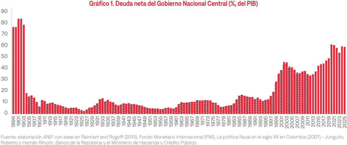 - La actual deuda pública en Colombia -equivalente a cerca del 60% del Producto Interno Bruto (PIB)- sólo es comparable con lo observado a finales del siglo XIX cuando el país enfrentó problemas de pagos de deuda externa e hiperinflación.