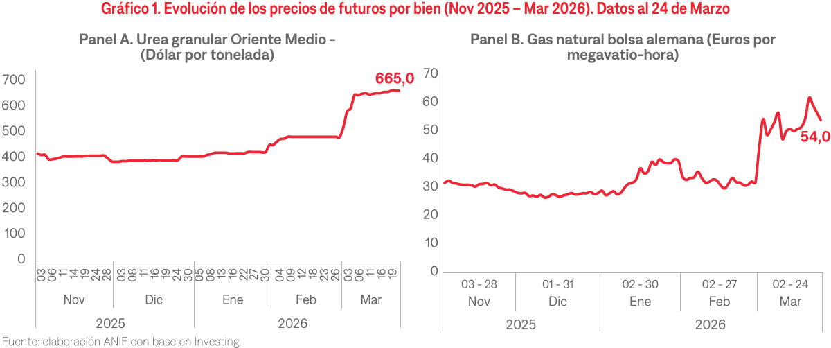 • El alza del gas europeo (+69,1%) y las disrupciones de las cadenas de suministro han impulsado los precios de la urea (+37,4%), evidenciando un choque combinado de costos y oferta con efectos persistentes sobre fertilizantes.
