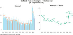 En agosto la Tasa de Desempleo (TD) se ubicó en 12.3%, 2pp por debajo de lo registrado en julio (14.3%). Si bien se esperaba que el desempleo se redujera de julio a agosto, como ha venido ocurriendo en los últimos años, esta reducción superó las expectativas de varios analistas. El resultado en el mercado laboral es positivo pues, aunque aún nos deja 1.5pp por encima de la TD de agosto de 2019, antes de la emergencia sanitaria, es un buen avance para consolidar la recuperación de la economía y del empleo.