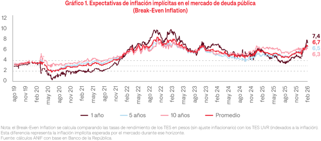 • En enero, el Banco de la República aumentó la tasa de interés en 100 puntos básicos hasta el 10,25%, buscando anclar el repunte en las expectativas de inflación.