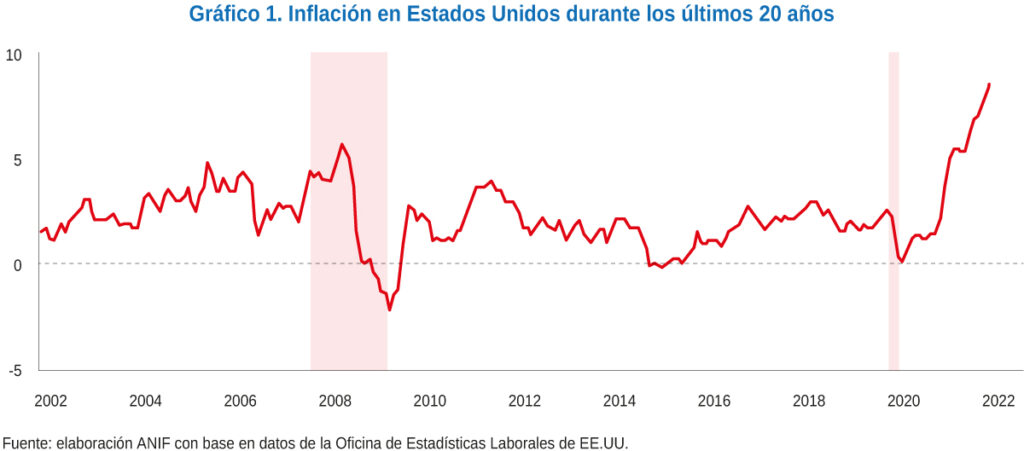 Hoy presentamos la segunda publicación de nuestro nuevo Informe ANIF de la economía global. En la presente versión contamos con dos secciones: Estados Unidos y Perú. En Estados Unidos la inflación ha tomado en los últimos meses un protagonismo económico que no suele tener. Analizamos los principales factores que han influido a la importante variación en precios y las medidas que se espera tome la Reserva Federal para contrarrestar la perdida en poder adquisitivo del dólar. Por su parte, la situación en Perú a raíz del descontento generalizado de la población por el alto costo de vida y la inestabilidad política ha resultado en que miles salgan a las calles a manifestarse.