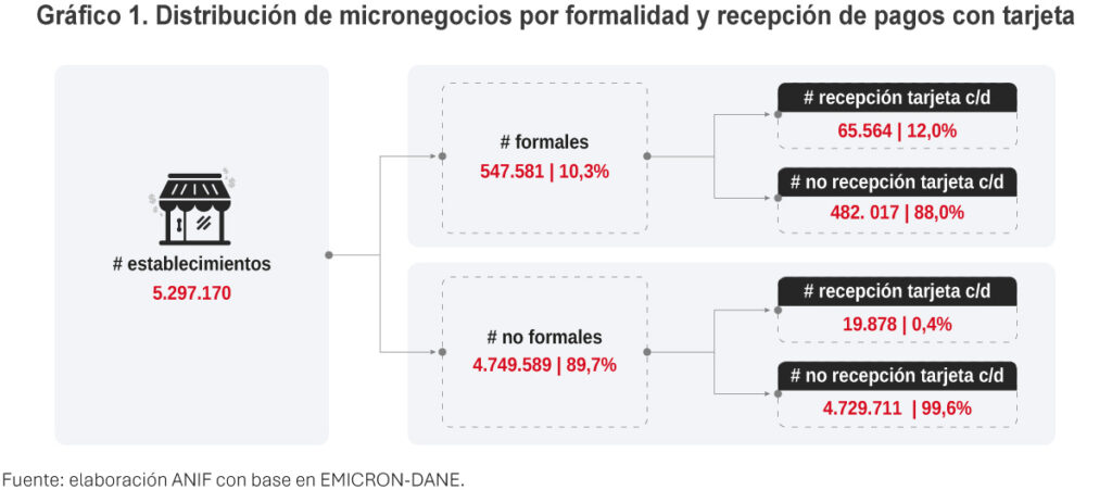 - Dada la alta informalidad que caracteriza al tejido empresarial colombiano, la exención de la retención en la fuente para pagos con tarjeta ofrece un alivio a la liquidez de los micronegocios y fomenta su formalización.