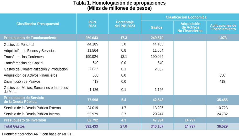 La radicación del proyecto de ley del Presupuesto General de la Nación (PGN) para la vigencia 2023 la realizó la administración saliente el pasado 29 de julio. Eso implica que el proyecto fue desarrollado bajo prioridades de gasto que podemos esperar disten de aquella del nuevo gobierno. De esta forma, se espera que el PGN que resulte al final del proceso legislativo será muy diferente a la propuesta inicial, lo que se reflejaría en cambios en la asignación sectorial, los montos de funcionamiento e inversión y el servicio de la deuda. Sin embargo, el análisis de la propuesta del gobierno anterior es relevante, en tanto refleja las prioridades y compromisos de este, al tiempo que mantiene la consistencia con las metas de déficit y deuda acordes con la Regla Fiscal.