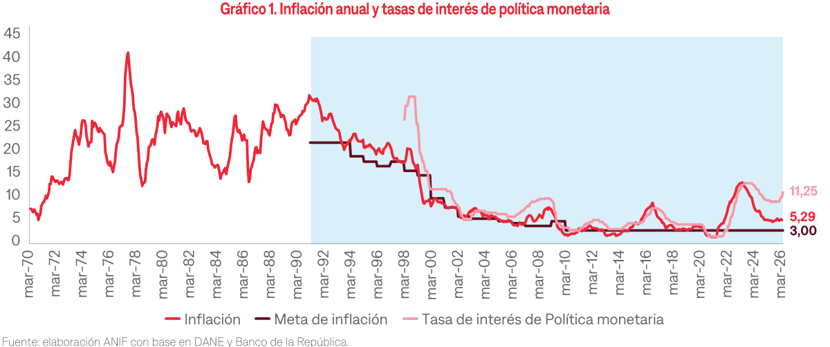 - Desde que la tasa de interés se consolidó como instrumento para contener la inflación, Colombia pasó de inflaciones del 30% a un dígito. El ciclo de alzas de 2026 responde a presiones persistentes sobre los precios y persigue el retorno de la inflación a niveles saludables para nuestra economía.